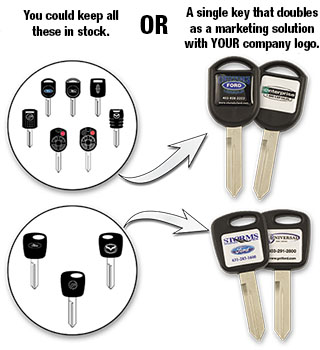 Key chains and other promotional materials are often discarded, but everyone keeps a working key. The embedded logo is designed to last the lifetime of the key so the advertising benefit lasts as long as the life of the vehicle. ID Keys are manufactured by OEM manufacturers and guaranteed to work.